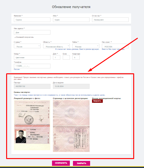 - Для оформления посылок сервисами Econom, Commersant обязательно предоставления копии общегражданского паспорта гражданина РФ (лицевой разворот и страница с штампом регистрации).
