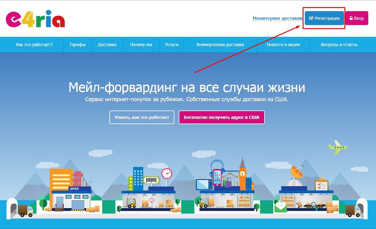 1. Кнопка РЕГИСТРАЦИЯ расположена в правом верхнем углу