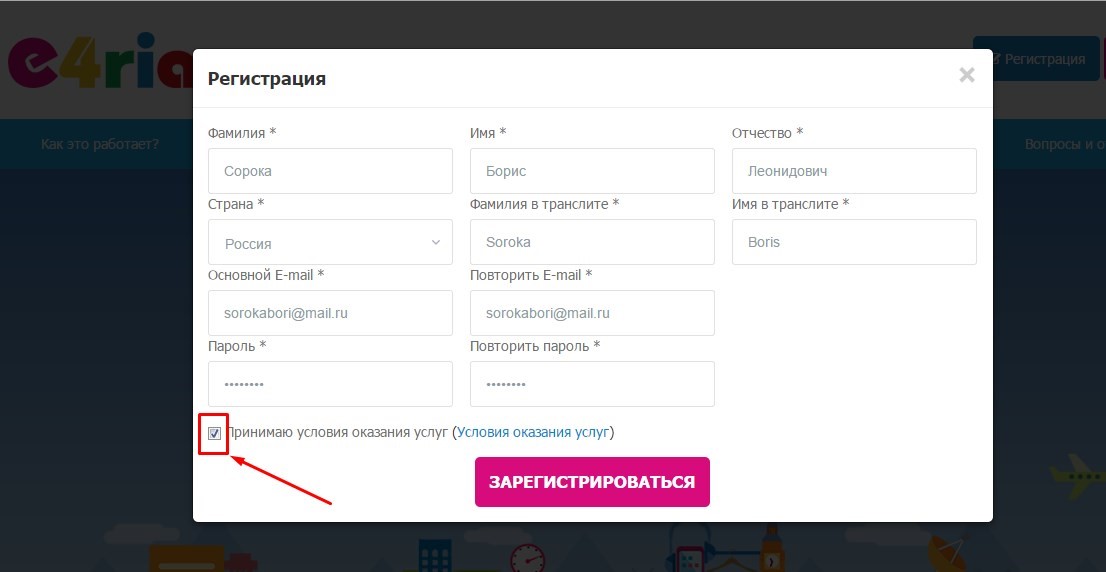 Регистрация учетной записи предполагает Ваше согласие на Условия оказания