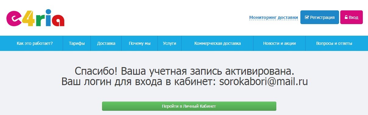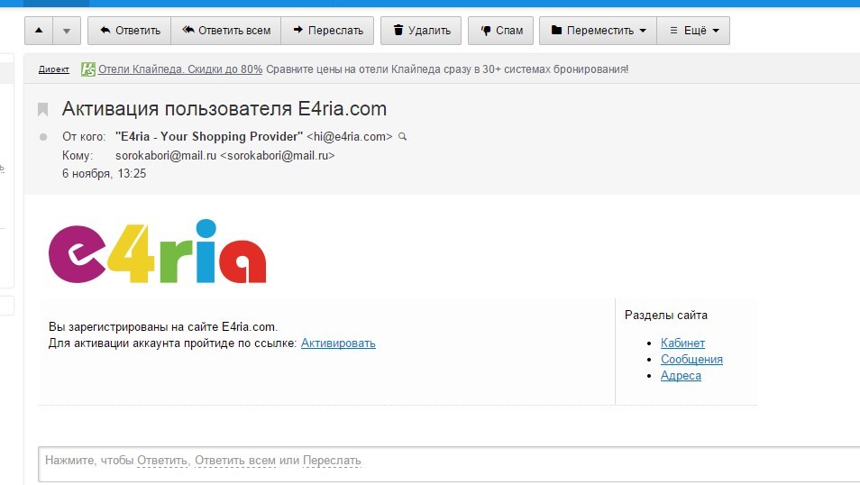 содержаться ссылка для активации учетной записи, перейдите по ней для