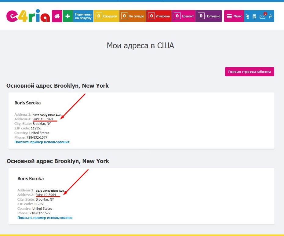 персональный адрес в США и Личный кабинет для управления покупками и посылками.