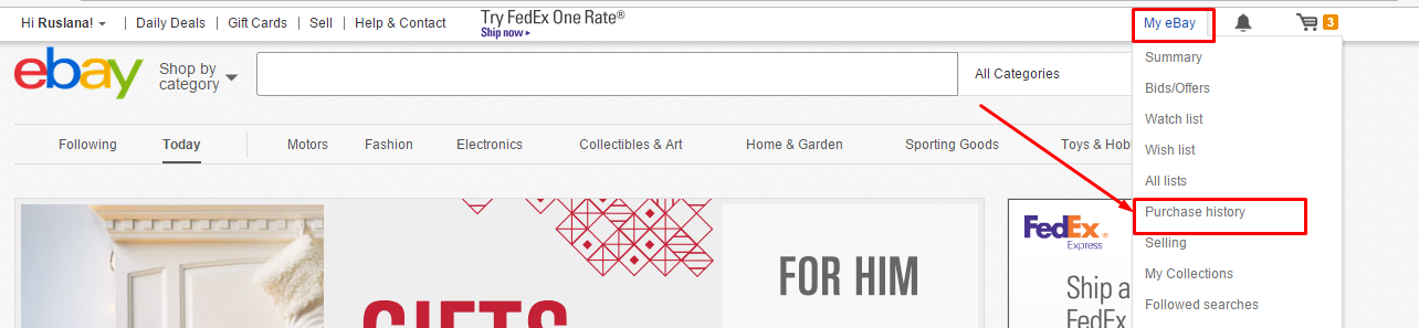 В интернет-аукционе Ebay инвойс можно сохранить из раздела Purchase history: